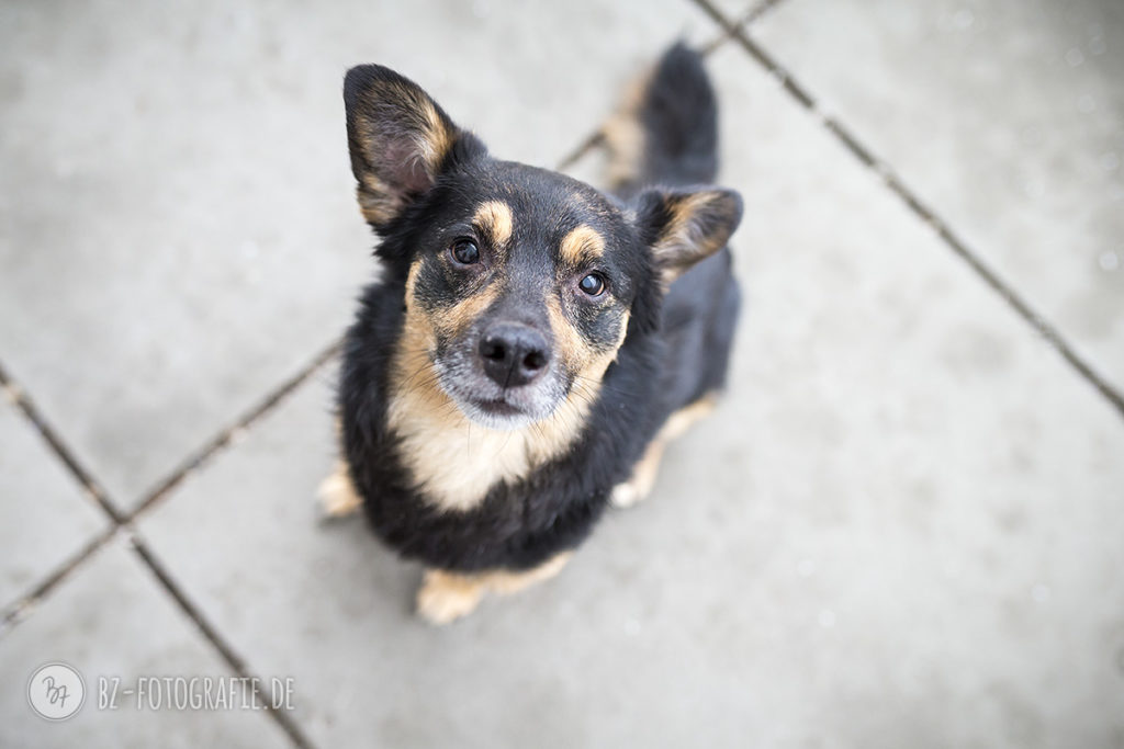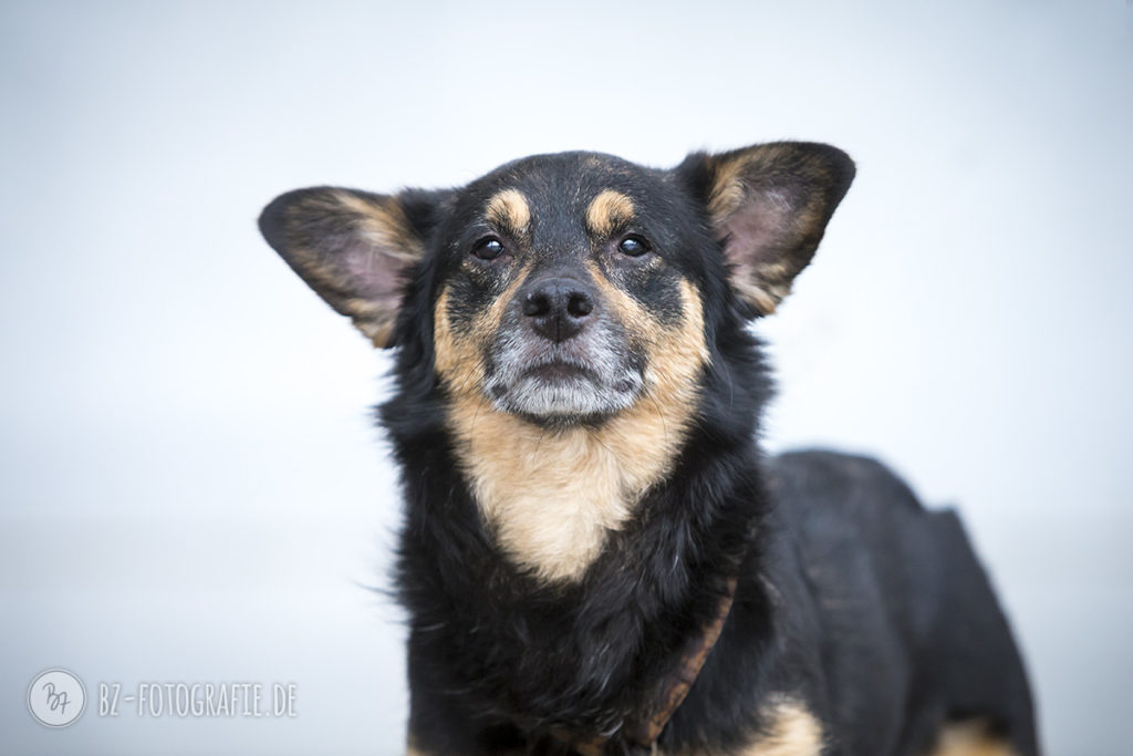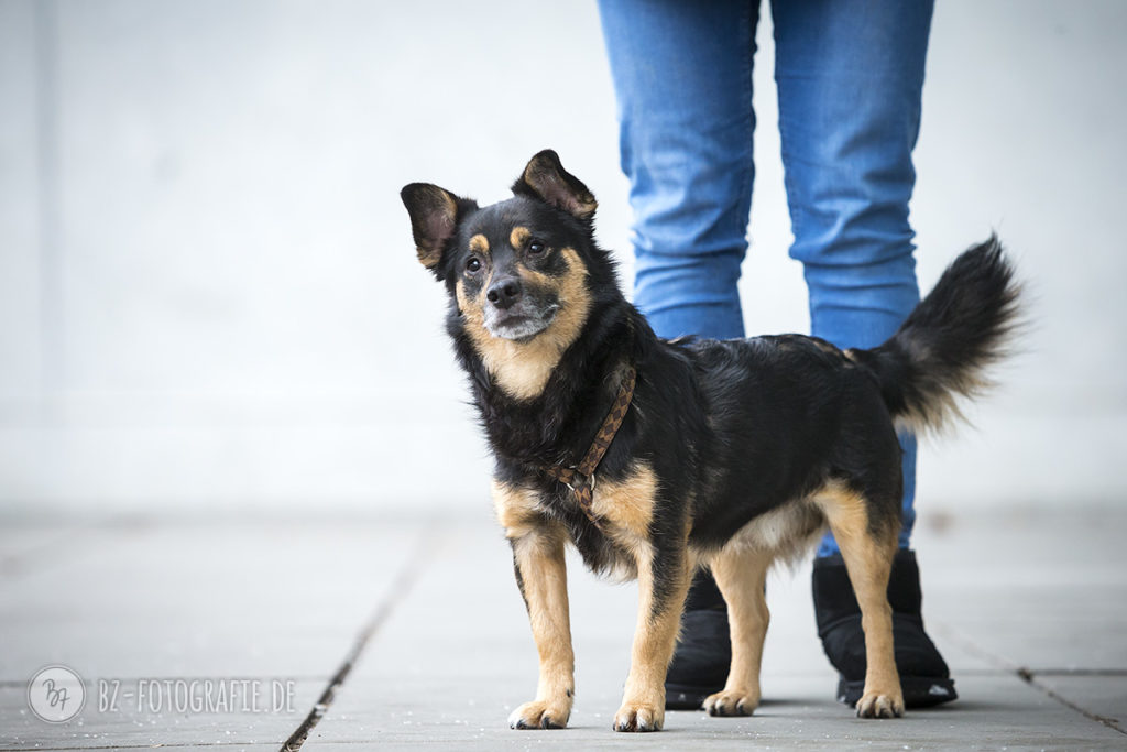 Der kleine Mann war naturgegeben bei seiner Fotosession etwas unsicher und orientierte sich stark an seinen Bezugspersonen. Auch der Blick ins Leere auf den Fotos läßt erkennen, daß er sich mehr über akustische Signale zurechtfindet als über’s Visuelle. Ich erlebte ihn aber als fröhlichen kleinen Hund, der Aufmerksamkeit und Streicheleinheiten gerne annimmt.